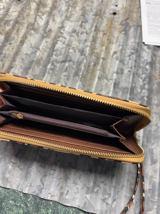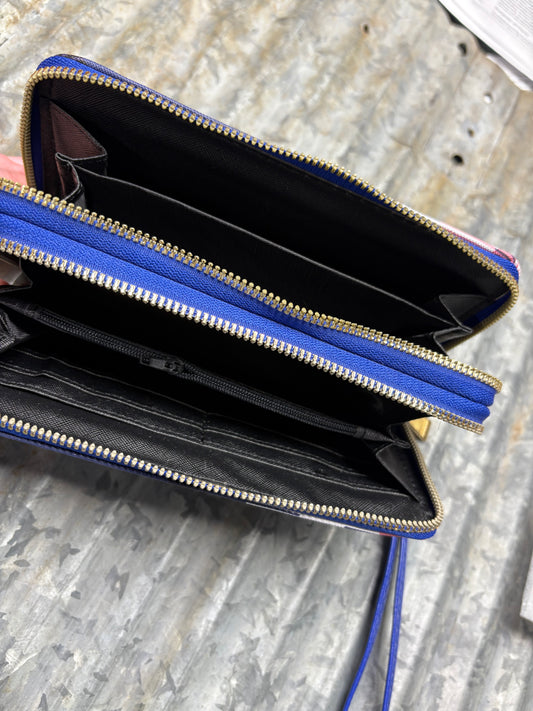 Blue Plaid Zip-Around Wallet with Wrist Strap