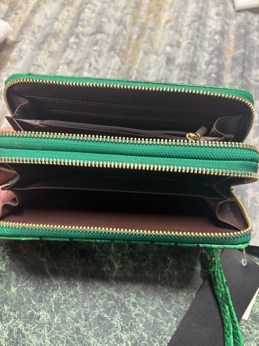 Elegant Green Genuine Leather Wallet with Dual Zippers