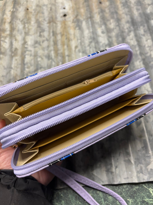 Stylish Lavender Wallet with Wrist Strap and Ample Storage