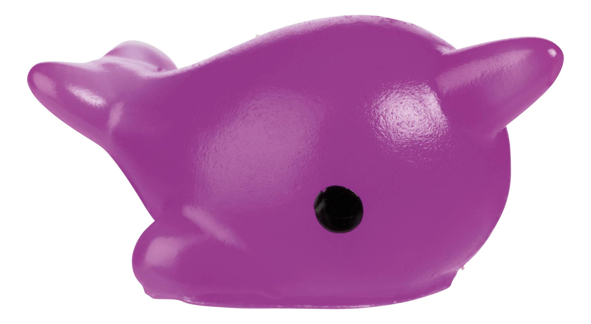Each arctic-themed blister packet contains 5 tiny narwhals: 1 adult and 4 baby whales. The 3-inch adult narwhal and two of the 2-inch babies are an icy blue color and covered in silver and blue glitter. The other two 2-inch narwhals are solid purple. All 5 narwhal squish toys have extra-round bodies with protruding noses, tails, and fins. Made of nontoxic gel materials for an extremely squishy and slightly sticky hands-on play experience. Easy to clean with warm soap and water, these squish toys are small enough for travel.